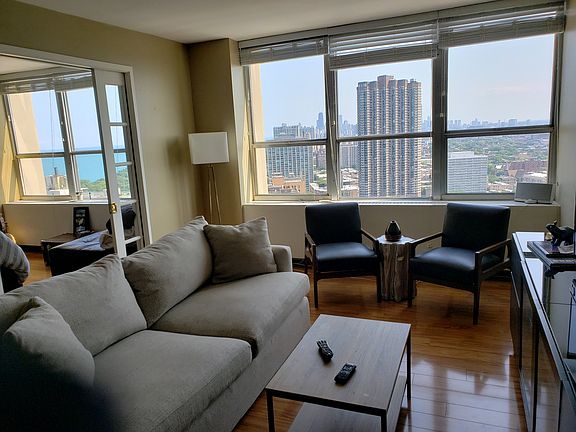 MODERN, BRIGHT & OPEN JUNIOR 1 BR IN MOST DESIRABLE 07 TIER. AMAZING PANORAMIC CITY, POOL & WRIGLEY FIELD VIEWS! FEATURES KITCHEN W/BREAKFAST BAR, BEDROOM SEPARATED BY FRENCH DOORS, NEWER WOOD LAMINATE FLOORS & NICE WOOD BLINDS. PREMIUM FULL AMENITY BLDG HAS POOL, SUNDECK, DOORMAN, FITNESS, LAUNDRY, THEATER, PARTY RM, GROCERY, HAIRDRESSER, DRY CLEANER...AND MORE! Convenient to transportation & shopping. Pets welcome with additional deposit of $500/ dog, $200 cat. Move in / move out fee $200 M-F or $300 Sat & Sun. Tenants are required by management to have renters insurance policy (H0-4) with $300,000 coverage for damage to other units.