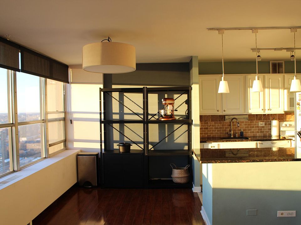 Rare chance to live in CORNER UNIT of coveted Park Place Tower next to the LAKE! This 1 bedroom/1 bath provides breathtaking south and west views of Chicago, including a skyline view, Wrigleyfield, and even the beautiful Lake Michigan. You'll never miss a stunning sunset from the 33rd floor. Phenomenal location means walking out the entrance and within a few steps you're at the Lake Shore pathway and harbors. Only a 10 minute walk to Boystown/North Halsted and a 15 minute walk to the historic Wrigley Field and all it has to offer. VALET PARKING optional for additional fee in a safe and enclosed parking garage that leads right into Park Place Tower's beautiful and updated lobby. Park Place includes party room, theater, 24/7 door person/security, pool, sundeck, grills, outdoor basketball court, gym, package and mail rooms, basement laundry -- all on property. Bedroom is so spacious it easily fits a king-sized bed, plus open living space connecting the kitchen with the living room makes this a perfect place for hosting your friends and family. Ample storage including three huge closets. New and modern blinds provide light-control and UV protection. Updated bathroom provides comfort and style. 12 month minimum lease. Non-refundable move-in fee of $1,200. Non-smoking and no-pet unit. Renter insurance of 300K liability required per Association. Valet, indoor parking in building available for additional fee of $200 per month. Tenants responsible for electric. Rent includes: water, cable, & internet.