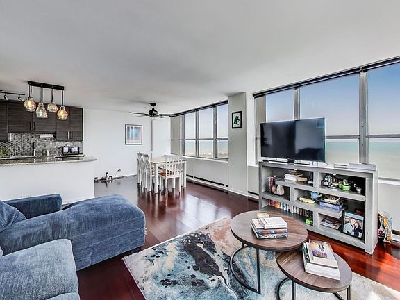 Experience breathtaking, unobstructed views from this highly sought-after Southeast Corner condo! Enjoy stunning lake and city views, along with a picturesque overlook of the pool and sundeck, all from the near floor-to-ceiling windows. The spacious living room dedicated dining area both have plenty of room for a huge sectional, club chairs, coffee table, full-size table, chairs, and more. The brand-new, fully gutted kitchen is a chef's dream, featuring sleek quartz countertops, a breakfast bar, all stainless-steel appliances, and modern soft close cabinets.This condo offers two beautifully gut renovated bathrooms. The expansive primary suite boasts ample closet space and huge ensuite bath. The second bedroom is also large and can be used in many different ways. A proper foyer welcomes you with a spacious coat closet and room for an entry table. This full-amenity building offers everything you need, including a fantastic pool and sundeck, grills, a fully equipped fitness center, a party room with a pool table, an outdoor party space, a theater room, a dog run, 24-hour door staff, on-site laundry, and even a convenience store. Indoor valet parking is available for rent. The location is unbeatable-just steps from the lakefront, biking and running trails, tennis courts, a golf course, grocery stores, shops, cafes, bars, a dispensary,Wrigley Field, casual and fine dining, plus easy access to buses downtown and the Sheridan Red Line. Don't miss this incredible opportunity to live in a beautifully updated home with unbeatable views and amenities! No rental caps in the bldg, investors are welcome. 1 garage parking spot is included in the price.