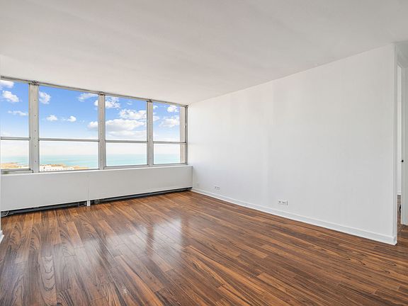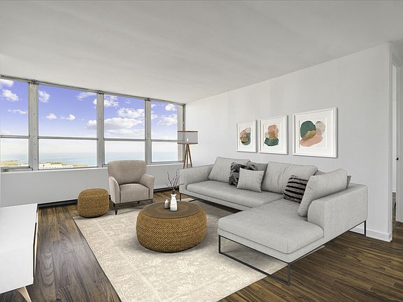 Gorgeous High Floor Two bedroom/One bath open floor plan Condo with the most stunning lakefront views. Hardwood Floors, large walk-in closet & much more. The kitchen, with breakfast bar peninsula, makes this a great condo for entertaining. The Kitchen is updated with Harwood cabinets, granite counters, and stainless appliances. The bathroom is beautifully updated. The entire unit is freshly painted. The Full Amenity building is complete w/Pool, workout gym, and TV room. The HOA includes heat, A/C, water & all building amenities. Beautiful location the lake, beach, golf course, harbor & city views. Parking is available -- there is a deeded space available for purchase or monthly rental