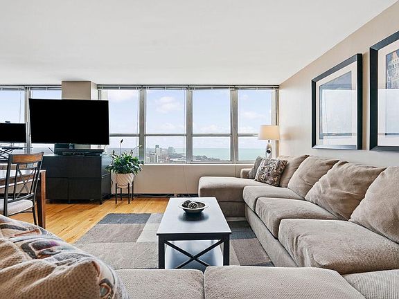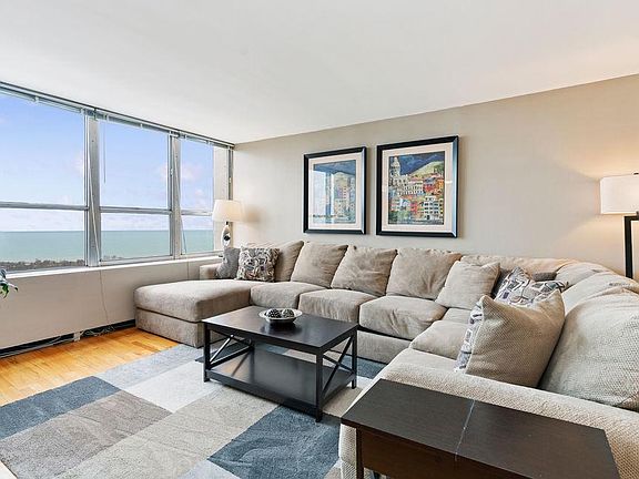 Step into this spacious 840 square foot unit and enjoy the amazing views and natural light pouring in through the wall of windows! This open unit in the popular Park Place Tower features a large open floor plan including an open kitchen with GE stainless steel appliances, lots of counter space for your cooking needs, ample cabinet space, plus a breakfast bar. The open lying space easily fits separate dining and living space. The amazing unobstructed northeast views of the lake continue into the spacious bedroom that has a wall of closets with built-in organizers. There is hardwood flooring throughout the unit. As a bonus, the unit has a large closet/den by the entrance that could be used as an office space, additional walk-in closet or can be opened up to create even more space! This full-amenity building located in Lakeview is equipped with 24-HR doorman, fitness, movie, & party rooms, amazing pool/sun-deck w/cabanas & grills! On-site cleaners & market. Pet friendly building. Amazing location, just down the street from Wrigley Field, close to the lake, Montrose Harbor, Lake Front Trail, Sheridan Redline EL Train, and busses. RARE SELF PARKING SPOT sold separately for $20,000. CLICK THE VIRTUAL TOUR BUTTON AND TAKE A VIRTUAL WALKTHROUGH OF THE PROPERTY WITH MATTERPORT TECHNOLOGY!