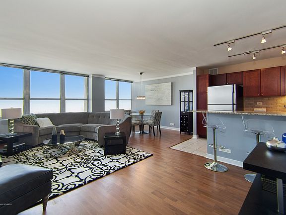 STUNNING VIEWS FROM THIS NEWLY REDESIGNED WIDE OPEN FLOORPLAN UNIT. NEW ENGINEERED HW FLOORING IN MAIN AREAS, NEW CARPETING IN BEDROOM, NEW DR LIGHTING, NEW PAINT THROUGHOUT. UPDATED BATH AND KITCHEN W SS APPLIANCES, GRANITE COUNTERS W BREAKFAST BAR. LARGE WALK IN FRONT CLOSET. BUILDING OFFERS A HOST OF ON-SITE AMENITIES: BIKE ROOM, 24-HOUR DOOR STAFF, SUNDECK WITH OUTDOOR POOL AND POOL SIDE CABANAS AND OUTDOOR GRILLS, BASKETBALL COURT, AND A COMMUNITY ROOM, A NEWLY RENOVATED EXERCISE FACILITY, VALET DRY CLEANERS, CONVENIENCE STORE, BUSINESS CENTER, COIN LAUNDRY, AND A 12-PERSON THEATER ROOM! PERFECT LOCATION TO ENJOY LAKE MICHIGAN, LINCOLN PARK, WRIGLEY FIELD ,SHOPPING, DINING AND NIGHT LIFE.