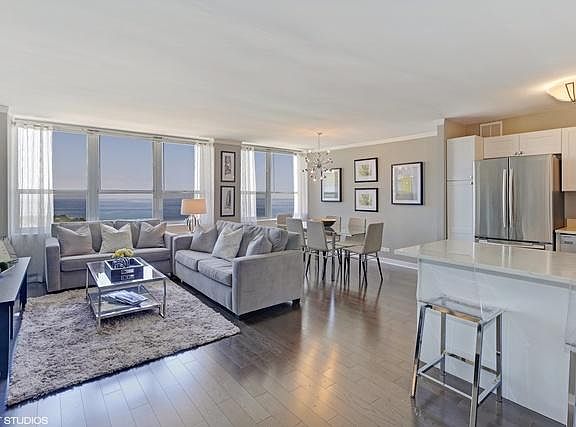 Designer condo w/stunning Lake Michigan, harbor, park & neighborhood skyline views. Arguably the best looking unit in Park Place Tower, completely updated with new hardwood flooring throughout plus new kitchen & bath finishes! Expansive windows allow generous amounts of sunlight into the spacious living room. Stylish attached dining area is perfect for entertaining! Gorgeous open kitchen feat white shaker-style cabinets, quartz countertops, stainless-steel appliances & breakfast bar! Updated bathroom with new quartz vanity, stone tile, & elegant fixtures. King sized bedroom with organized closet & fantastic views. Amazing storage throughout incl 3 hall closets! Building boasts luxury amenities incl 24-hr door staff, full gym, spectacular outdoor pool, sun deck with grills, alfresco dining, turf fields & basketball court. Many public transit options incl Red Line & buses nearby. Walkable to lots of restaurants, bars, stores, grocery & the lakefront! Rent includes heat, AC, cable TV & internet. Garage parking options available, $215/mo & available May 1st! PETS: TO LESSOR: 1 pet up to 40lbs OK with $25/mo pet rent. TO ASSOCIATION: $125/dog per year and $35/cat per year registration fee. FEES: Non-refundable $225 move in/out fee Mon-Fri. Non-refundable $325 move in/out fee Sat & Sun. Moves OK 7 days a week. Non-refundable $500 lease fee in lieu of security deposit & first month rent due at lease signing, no exceptions. INCLUDED: Heat, AC, Cable TV & internet! PARKING: $215/mo valet parking or other owner-owned options available. Lessee must obtain & maintain an insurance (HO-4 policy) providing a minimum of $300,000 of insurance coverage for damage to other units in the building