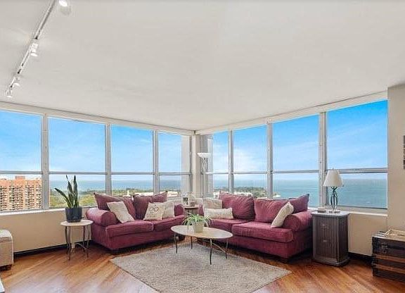 Spectacular views of the Lakefront & Montrose Harbor from this 2BR, 2BTH home in a great full amenity building! 24 Hour Door Staff, on-site management office, fitness room, pool, sundeck, grocery store, cleaners, salon, yoga studio, theater, party room and on-site garage parking. Rarely available corner unit! Views from every room and real hardwood floors, tile kitchen and baths, bedrooms carpeted. Kitchen with cherry wood cabinetry, granite counters, all stainless steel appliances. Watch the boats come into the harbor while cooking dinner or dining with friends. This unit also has lots of closet space. It doesn't get better than this for location with the lakefront, restaurants & shopping all right outside your front door as well as easy access to Lake Shore Drive and express bus to downtown as well as the Red Line Sheridan "L" stop just four blocks away. Garage parking on site.