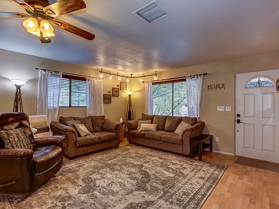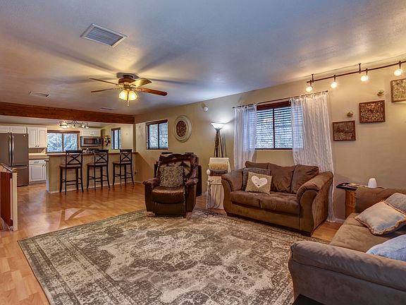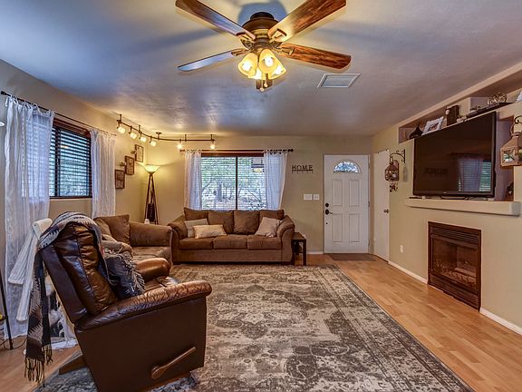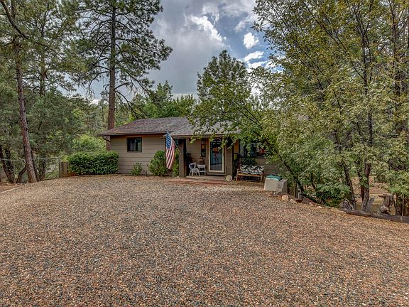 Gorgeous updated home in Prescott Mountain Club. Live in the pines and be walking distance to downtown Prescott. This well appointed home offers 3 large bedrooms, 2.5 bathrooms, two huge living areas, tons of storage, office space, and a backyard that has room for anything you want to do including RV space. 3 storage sheds, access to the creek behind the house. 1 year old appliances, AC/furnace 3 years old, recessed lighting, tongue and groove walls, in-floor heating, large laundry room, water feature, 2 decks, and plenty of parking and storage. Live on one level!