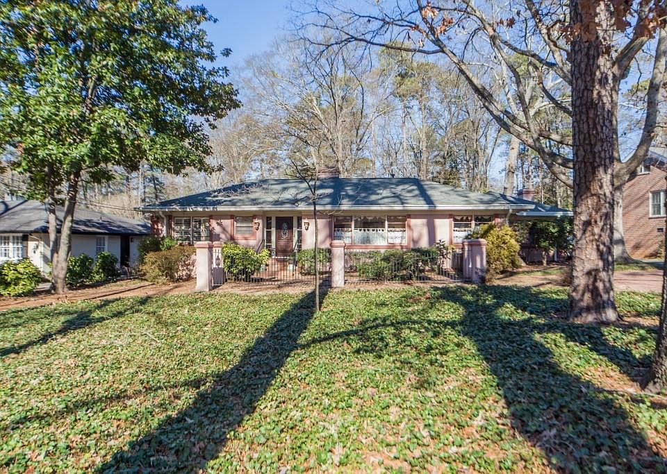 Spacious ranch on almost acre lot. Very light and bright. Walking distance to Downtown Decatur. Near parks and playgrounds. Entry foyer leads to spacious formal living and dining room; Eat-in kitchen overlooks private back yard with patio, pool and deck; Large family room with a fireplace and built-ins; half bath and laundry room; Sunroom with fireplace off kitchen back yard views; Large master with bath and large closet; Guest room; hall bath, hardwood floors; play house in the back yard. Hardwood floors. Very special house.