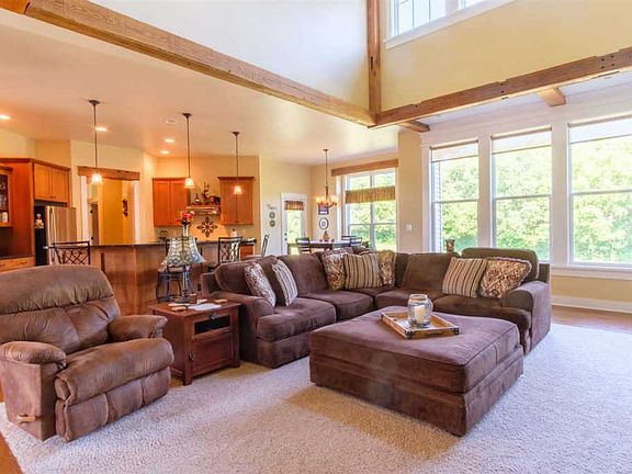 Perched atop a bluff on a private 3.4-acre rural Belvidere homesite, this sprawling fully exposed ranch is a superb example of custom modern prairie style architecture. Scenic 400ft driveway off a private rural cul-de-sac. 2941sqft of finished living space and a wide open basement ready for you to finish the way you want it. Open concept layout with 18â clearstory ceiling in the center, finished with 19th century locally harvested barn beams. Massive stone fireplace with 4â opening is seated symmetrically in the great room. Wall of windows invites the countryside in. Beautiful hardwoods, rounded corners and wood elements. Granite kitchen tops on shaker cabinets with roll-outs, dual-fuel range, large island, breakfast nook and formal dining room. Master suite features coffered 10.5â ceiling and inset beams, tiled shower, jacuzzi tub, double bowl sinks and WIC. Jack and Jill bath between the two other main floor bedrooms. Enormous 4.5-car endload insulated garage. A true masterpiece!