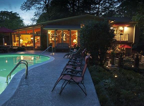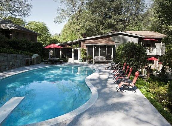 Rare Mid-Century Modern in private wooded setting perfect for those wanting a retreat in the city, showplace for entertaining, or great place to raise a family. Home w heated gunite pool has been renovated and expanded by longtime owners in keeping with original architectural style: Vaulted, tongue + groove ceilings w exposed beams; Windows that let the outside in; Large open spaces. Home on 3 levels includes: Master Suite w Balcony; Screened Porch; Terrace Level FR w 2nd FP, 4th Bdrm+Bath; Kitchen open to LR w FP; Gorgeous DR; Workshop; Basement...more.