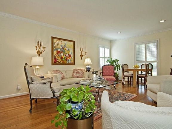 Extremely charming home with classic design on a large treed lot boasts a separate guest house & pool in back! Both living areas are spacious, each with its own fireplace! High quality updates include refinished wood floors & crown moldings in most of the home, with a completely remodeled granite kitchen featuring custom cabinets & stainless appliances, & 2.1 very tastefully updated baths. Behind the property is the popular new hike & bike path!