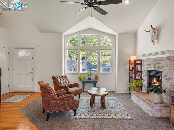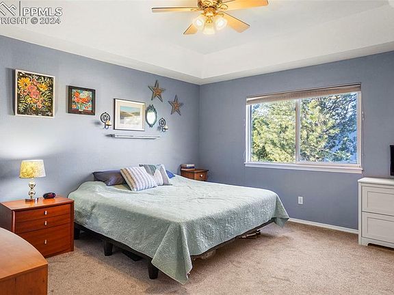 In the shadows of the Rocky Mountains lies a former model home that showcases the finest in Colorado living. As you step inside, you’ll immediately notice the natural light and open floor plan. With a spacious main floor primary bedroom and adjoining refinished bathroom, you’ll have everything you need on one level! Upstairs you’ll find a large, open loft with plenty of room for an additional space for an office or workout area. Two more bedrooms and a full bathroom make it a great area for hosting guests or family. The walk-out basement has a large, partly finished bedroom perfect for a spare room or a great teenager’s den. Also plumbed for a bathroom, you have plenty of room to grow. Outside you’ll be blown away with the impeccable views of Pikes Peak from the deck, mature trees and gorgeous landscape. One of the very few homes in the area with a grandfathered dog run and garden makes a wonderful backyard oasis perfect for entertaining. A large 3 car garage helps showcase one of the largest lots in the area. This home is the perfect low maintenance living with the HOA taking care of not just the yard, but they do all the snow removal as well! Across the street from Ute Valley Park and on the doorstep of Garden of the Gods, this area gives you the chance to experience the best Colorado has to offer. Coveted D20 schools with Eagleview Middle School right down the street. This home has it all, come check it out today!