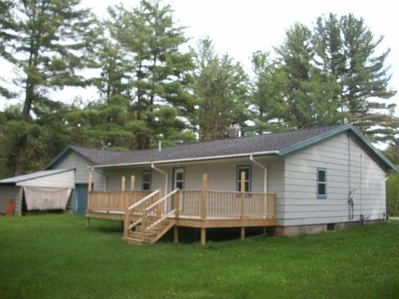 Private secluded setting yet close to town conveniences. 2+ bedrooms with additional finished rooms in the lower level. Many recent updates including a drilled well, shingled "michigan" roof, 12 X 26 back deck , interior remodeling w/ new carpet and paint, and stainless appliances. Huge attached insulated garage / workshop with a rear overhead door, fenced in dog kennel and lean to. Nearly 4 acres of wooded privacy set back off County Road K.