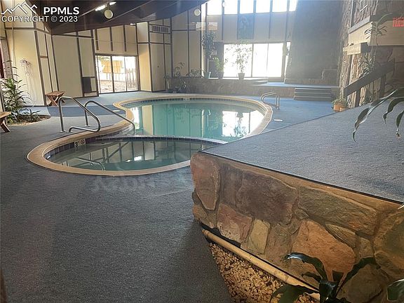 Welcome to this fantastic 2 bedroom, 2 bath condo located in the desirable foothills of Northwest Colorado Springs! Pikes Peak Mountain Views with open space and walking trails behind. Access to Interstate 25, shopping, hiking, recreation, restaurants, and medical facilities nearby. Enjoy an indoor pool, sauna, hot tub, tennis courts. Perfect for entertaining or relaxing. This beautiful home features an open living room “Great Room” with a wood-burning fireplace that opens up to a large private covered patio. The condo is well-equipped and completely updated with new flooring, new bathrooms with new ceramic tile, fresh paint, and lighting. The Kitchen is open to the great room featuring expansive slab granite counter tops, and a new smooth top flush mount stove and a walk in pantry closet.There is a large dining area to complement all the seating at the kitchen island. The master bedroom is a large space with an en suite bathroom featuring a separate shower, water closet, and vanity area. An Additional bedroom and a full bath complete the main level, along with a washer & dryer for added convenience. This is a prime unit with amazing views and all new finishes.