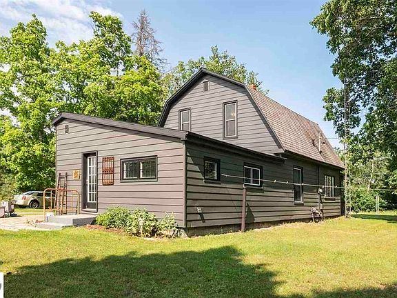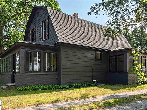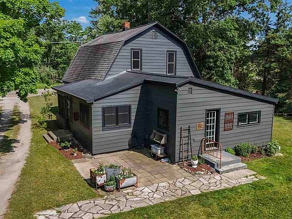 Nestled on 5.15 acres of pristine Michigan landscape, this secluded nature oasis is a mere mile from downtown East Jordan. Surrounded by expansive vacant land, the property boasts 300 feet of serene Deer Creek frontage, offering unparalleled tranquility and privacy. The charming 3-bedroom, 1.5-bathroom home spans approximately 2000 square feet and was originally remodeled in the 1970s with modern updates. Inside, rustic charm abounds with butcher block countertops, handmade wood cupboards, and natural hardwood stenciled plank pine and laminate flooring throughout. Gather around the original fieldstone fireplace in the cozy living room or retreat to the inviting 3 seasons room, which provides stunning views of the property year-round. Original mission oak French doors add elegance, while a large detached 2-car garage and circular driveway provide ample parking and convenience. Additional structures include a historic fieldstone garden building, originally a farm milk house, adding to the property's unique charm and offering extra storage or workshop space. Outdoor enthusiasts will appreciate the proximity to Jordan River access sites, nature preserves, parks, and snowmobile trails, perfect for exploring the natural beauty of Northern Michigan. This property offers a rare opportunity to own a slice of paradise where the harmony of nature meets comfortable living. Whether you seek a weekend getaway or a year-round sanctuary, this home promises endless possibilities for relaxation and adventure!