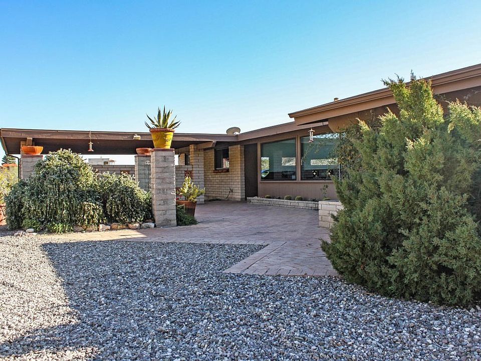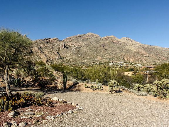 This mid-century ranch home embraces desert living at its best. From its spot in the Coronado Foothills you have BIG views of the Catalina mountains from the Great Room & Kitchen, and sunset & city views from the patio. Enjoy sightings of wildlife from the wall of windows. This home is gracious, warm and inviting. The flow of the formal Living Room, Dining Room & Great Room are perfect for entertaining or family living. Split bedroom plan. Large master with built-in bookcases...and more bookcases in Great Rm for books, glass or pottery collections. The Kitchen & large Butler's Pantry have been remodeled with custom cabinets, silestone counters & top-of-the-line appliances. Minutes from La Encantada & restaurants at Skyline & Campbell.