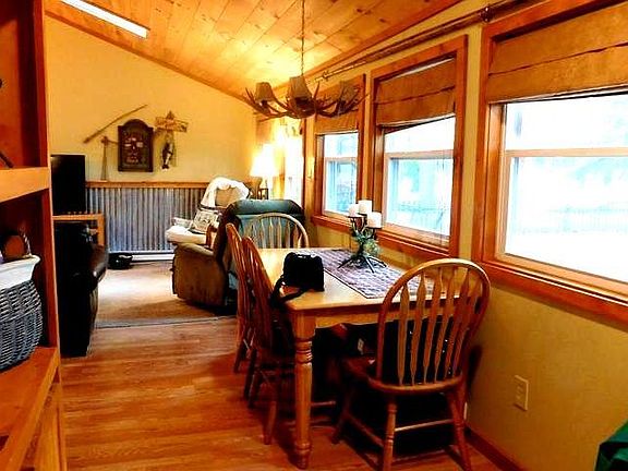 NEW PRICE! All Sports ELK LAKE! Waterfront View without the waterfront price! This fully furnished Open Concept home boasts a Great Room with a gas fireplace, 2 bedrooms and a sleeping loft, 2 bathrooms, a full kitchen with appliances, there is a washer/dryer combo is in the half bath, the 50X18 garage is insulated. The Guest Quarters boasts a private entrance, a living room- bedroom area & a half bath. Moor your boat or jet ski on the water. Call to see this turn-key home today!