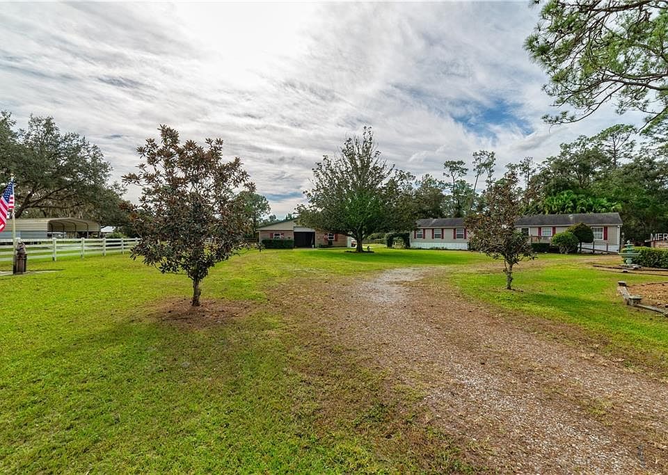 Peace and tranquility abide in this nearly 2000 sq ft / 4/2 home on over 2.5 acres! As soon as you walk in, pride of ownership and meticulous care are apparent. The layout is spacious, open and includes split bedrooms, formal dining area and large kitchen, living room and dinette that are all open to each other. Outside there are HUGE balconies on both the front and back of the home, 48 x 40 garage / workshop with roll up doors that will hold up to 9 cars (or a combination of boats, ATV's, toys or tools), horse stables, gazebo, small pond and plenty of room to roam. The location is second to none! The property is located only minutes from shopping, dining, major highways, world class attractions and the Lake Nona / Medical City area.