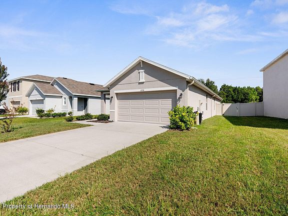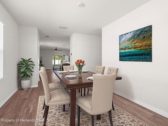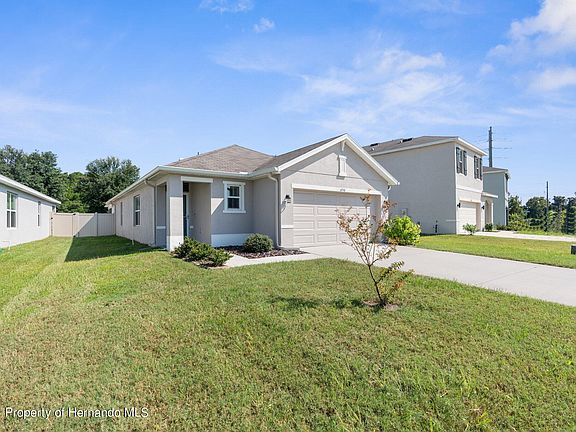 Active Under Contract - Accepting Back Up Offers. One or more photo(s) has been virtually staged. Your search for a piece of the American dream ends here! Located in deed-restricted Seagate Village, this home is cute as a button and move-in ready. The Allex model was completed in 2020 by D.R. Horton, so it's practically brand new. The floor plan is open, functional, and spacious, with flexible living and dining areas. Beautiful laminate flooring throughout is chic and easy to maintain. At the heart of this gem lies the kitchen, which is modern and practical with shaker cabinets, plenty of counter space, and a big pantry. Retreat to the primary bedroom at the end of a long day for some respite. It's expansive, boasting a large walk-in closet. The attached bathroom has a huge standalone shower. Family or visitors can relax comfortably in the remaining two guest bedrooms. They're sizable with plenty of closet space. They share a full bathroom with a tub/shower combo. Head through the sliding glass doors to the enclosed Florida room and bask in the sunshine while a ceiling fan keeps it cool and breezy. You'll have a lovely view of the backyard, which is surrounded by vinyl fencing. Park your grill on the covered patio for all of your summer barbecuing. Seagate Village is a newer community with low monthly HOA fees and no CDD fees. It's less than 10 minutes away from the charm of downtown Brooksville with its cobblestone streets and mom-and-pop shops, as well as Tom Varn Park. Tampa and its attractions, like Busch Gardens and Raymond James Stadium, are less than an hour to the south via nearby US-41. Private showings are available. Make this home your own today!