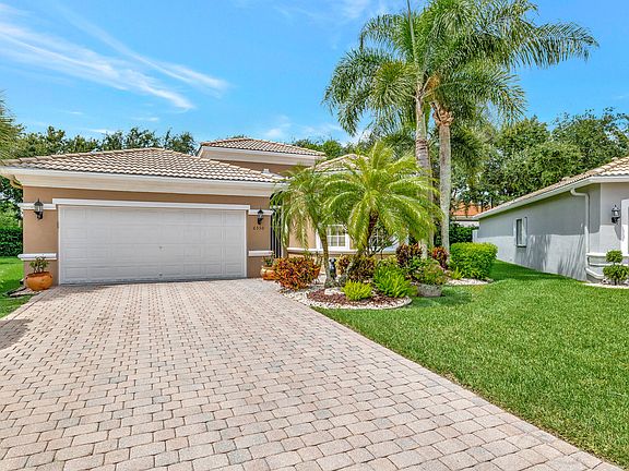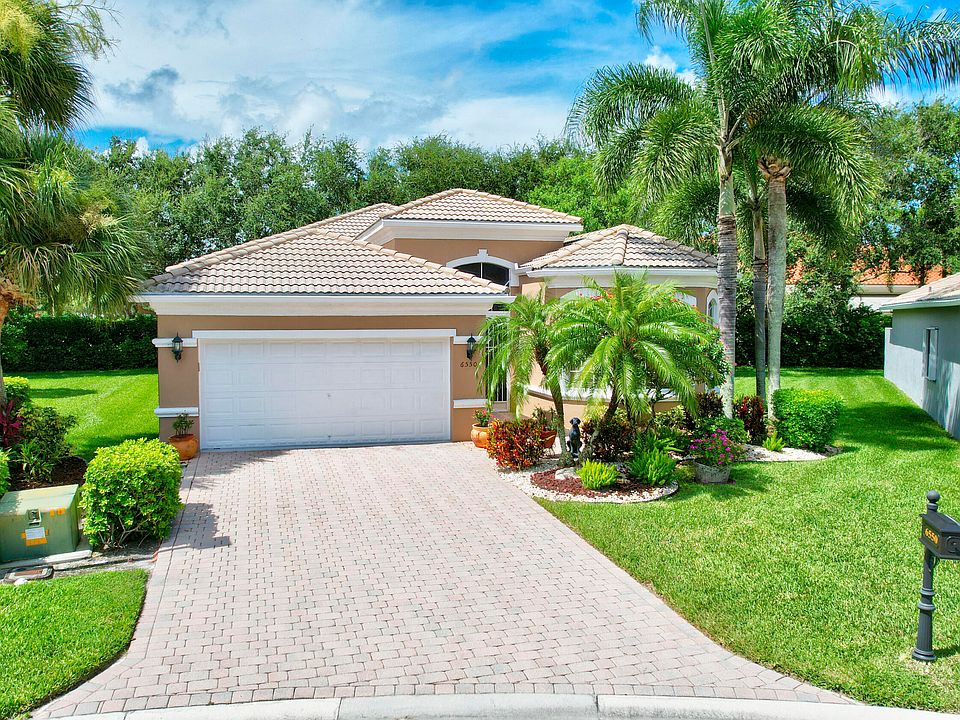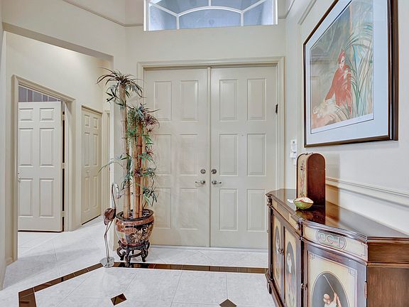 This lovely Bellaggio home is waiting for you! Perched on a cul de sac street, the extensive landscaping is your first clue this home is special. Very well maintained home offers a formal living room and casual family room, upgraded kitchen has lots of 42 inch wood cabinets and granite counters. Convenient wall oven, work desk in kitchen. upgraded wood vanities in primary bathroom, built ins in office/den. Tile on the diagonal thru the living areas. The 3rd bedroom is being used as an office/den. Lots of crown molding detail and window treatments. Screened lanai overlooks a garden view with no homes behind. Very private and quiet. Enjoy the Bellaggio lifestyle which consists of tennis, pickleball, indoor/outdoor pool, lots of clubhouse activities and clubs.