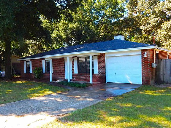 REDUCE AND READY FOR THE HOLIDAYS. Plenty of New and Priced to sell! Whether you are a first time buyer, investor or a retiree looking to down size don’t miss your opportunity to own this all brick 3 bedroom 2 bath home in Bellview Pines. New roof, gas water heater, kitchen cabinets, counter tops, paint, tile flooring, baseboards and recently replaced HVAC system are only a few of the updates that will ease the burdon of high insurance quotes and peace of mind. You will appreciate the open great room and the beautiful resurfaced wood burning fireplace. If you have an adventurous child or two they will really enjoy the built-in bunk bed, desk and imaginative play area. The French doors allow access to a the large covered patio area that overlooks the spacious tree covered back yard that would be perfect for BBQ’ s and entertaining. Property is centrally located and close to shopping, restaurants, entertainment, schools and just a short distance to the Gulf Coasts beautiful beaches. Come and view! This one won’t last long.