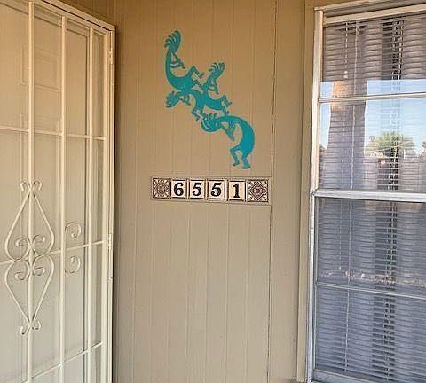 Looking for a near-perfect 4 BR home tucked away on a quiet residential street? Get ready to be dazzled by decorator tile through home. Exterior brick, trim & interior sparkle with fresh paint. Roof has been re-coated, AC/Furnace & water heater have been recently replaced. Both patio doors in dining area, master bedroom & large picture window in living room are now energy-efficient dual pane. Hall bath features executive height vanity w/ granite top & sink, new light fixture & low-flow toilet. Master bath has new vanity, light fixture & inset medicine cabinet for storage. Skip TV, go outside & relax on spacious patio that extends length of home. Breathe in the aroma of flowering plants that include a rose bush, desert bird of paradise, colorful ground cover & a variety of cacti.