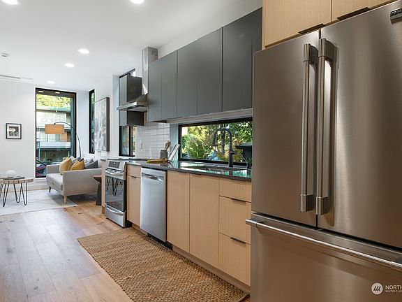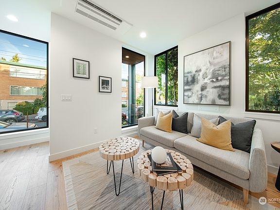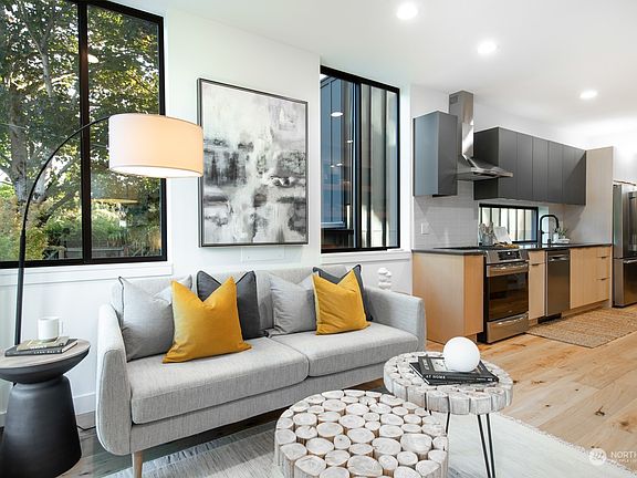 Another incredible project by boutique builder Modern Den! Welcome home to this beautiful quality construction townhouse in the heart of Phinney Ridge. Designed with natural light, this townhouse offers designer finishes including top of the line appliances, wide plank hardwood floors, & quartz countertops. Head upstairs to the 2nd level complete with two bedrooms & a full bath. The 3rd level showcases the primary bedroom with Scandinavian finishes, walk-in closet, & spacious bathroom w/double vanity. Don't miss the roof top deck with stunning 360 degree view of the city! One off-street parking space. Just one block to restaurants and shops!