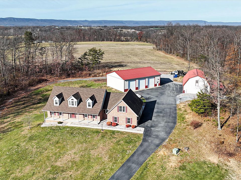 Car/Hobby/Equipment Enthusiasts Take Note! This 3,200 sq. ft. custom Cape Cod home is situated on 3.36 acres of country scenery w/attached 2 car garage plus 2 detached buildings: 30'x44' w/(2) overhead doors and 44'x60' w/(3) 14'x12" overhead doors. No corners were cut when this 4 bedroom 2 1/2+ bath home was built, including Brazilian cherry hardwood & ceramic floors, custom cherry kitchen by Shady Grove Planning Mill, large walk-in kitchen pantry, vaulted family room ceiling, solid wood doors throughout & custom primary bath. Also many updates have been made since construction, such as: roof replaced 2013, primary bath completely remodeled including custom tile shower 2025, new carpet in primary bdrm, HVAC systems replaced 2022 & 2015, windows & rear exterior door have been replaced and home has been freshly painted. Perched on a hilltop, the paved drive leads you to this awesome property. It's a must see for anyone looking for a family home in move-in condition, plus additional garages and plenty of parking area. Only minutes from Greencastle.