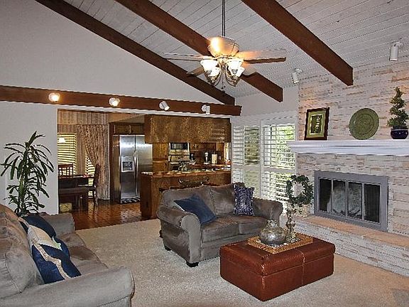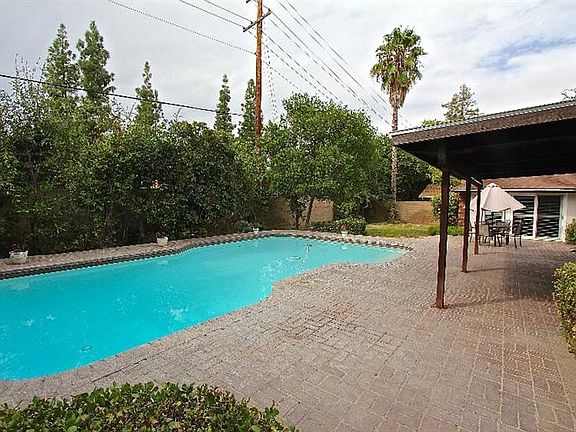 Welcome to Van Ness Estates II. This beautifully maintained and updated Easterbrook Home is waiting for you. All the popcorn ceiling texture has been removed and there is new interior paint, hardware and plantations shutters throughout. You will be impressed with the exposed beam architecture and the elevated ceilings treatment you will find throughout. Entertaining is a breeze in this home as it features spacious living room, dining room and a wonderful kitchen with stainless steel appliances that opens up to the casual dining area and family room. The family room is accented by a beautifully renovated stone fireplace and has great views of the rear grounds. Family and friends will enjoy the relaxing on the extensive brick patio, green area or frolicking in the sparkling pool that has been recently resurfaced, all surrounded by mature landscaping providing shade and privacy. Both the front and rear yards are on drip irrigation reducing water bills. All this and a newer roof. Wow!