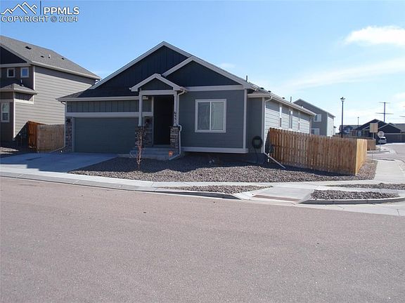 Beautifull rancher built in 2019 with 5 bedrooms, 3 full bathrooms and a two car garage, sitting on a "double" corner lot in Lorson Ranch! Open floor plan with soaring vaulted ceilngs in the great room, lots of natural light and walks out to the back yard. The kitchen has a huge island with quartz countertops, under mount sink, recessed lighting, stainless steel appliances including a brand new fridge, 42" upper cabinets and a pantry for extra storage. The master bedroom features vaulted ceilings, a 5 piece master bathroom and a walk in closet. Brand new luxury vinyl plank flooring and brand new carpet throughout. Two more main-level bedrooms and main level laundry room. Huge walk-out basement includes two additional bedrooms and a full bathroom. There is extra storage space in the mechanical room. Brand new roof 3/24. Central air conditioning, whole house water softener and whole house humidifier. Great location close to the military bases, and Amazon.