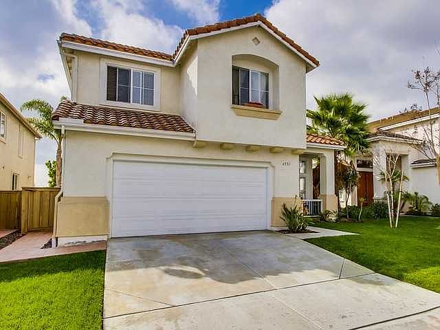 Beautiful home in an excellent Sorrento Valley neighborhood. Light and bright floor plan with tile floors in the downstairs living areas. Hickory wood floors on the stairway and throughout the upstairs hallway and bedrooms. The fourth bedroom is currently used as an office but can easily be converted back to a br. Ceiling fans with lights in all bedrooms. Inside laundry room with sink. Three car attached garage with extra storage. Private backyard with covered patio. Low HOA fees and no Mello-Roos.