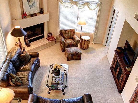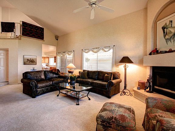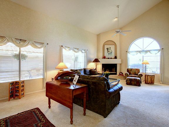 Gorgeous 3 bedroom, 3 bath home on a premium golf course lot with panoramic mountain views and a direct view of Red Mountain! The architectural features of this home will take your breathe away. From the 18 ft vaulted ceilings in the Living Room to the spacious kitchen with breakfast island and kitchen cabinets all around, there is even a wine bar area for entertaining. The master suite is off the living room with an exit to the rear yard and its stunning views. The formal dining room leads you to the 2nd bedroom and full 2nd bathroom. Up the unique stairway is the loft bedroom 3 and bath 3. Newer A/C and roof. Home shows like a model and is immaculate!