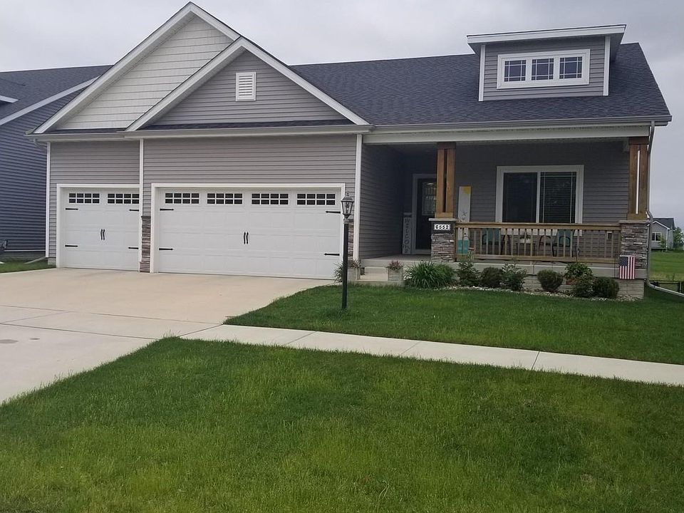 Don't wait to see this "Fostoria" ranch nearly 3,000 sf finish. This Hubbell re-sale has 9ft ceilings throughout, 4BR, 3BA, 3Car, & a beautiful finished Lower Level with daylight windows. The large great room with double boxed ceiling and corner fireplace open into the kitchen and dining area to give you lots of family and entertainment space. The kitchen includes White staggered cabinets, stainless appliances (gas stove, granite counters & pantry. Oil rubbed bronze lighting fixtures and hardware throughout home. Master suite showcases a tray ceiling, double vanity, 5ft tile shower, and oversized closet. Gorgeous curb appeal with the huge front porch, stone accents, and beautiful landscaping that surrounds the home. Fully fenced yard with new 500 ft patio, NEW orthopedic hot tub, and backs to the executive 9 hole golf course. Even though it might be raining on the golf course, you can enjoy the indoor golf simulator that is also included This home is a MUST SEE