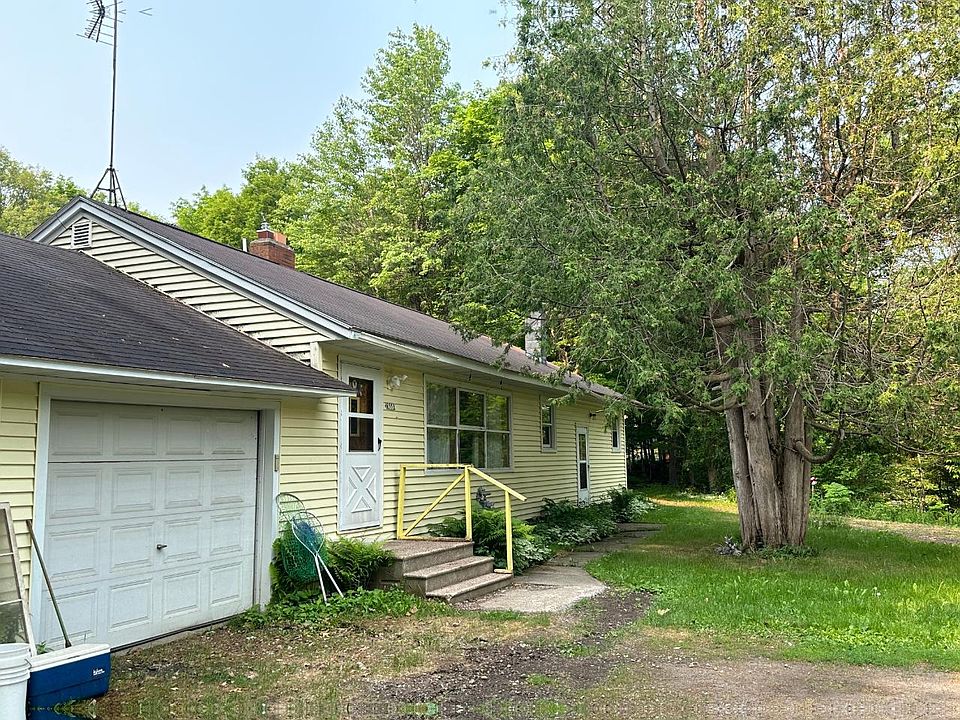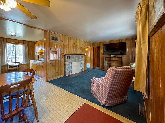 Three bedroom ranch with extra garages on nearly an acre just outside of town. Main floor living features include a 3-4 bedrooms, a single bath, kitchen with attached laundry room, knotty pine interior. Convenient natural gas and spectrum internet availability. Newer furnace and newer natural gas water heater. Wood stove in basement and fireplace in living room (fireplace has been closed up for several years). On nearly an acre, there are apple trees and nice yard space behind the house, and two detached garages. One has upper loft space for added storage. Seller has been working to make some repairs, and some are underway, to be completed prior to closing. Ask your agent for details.