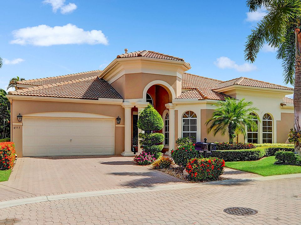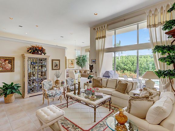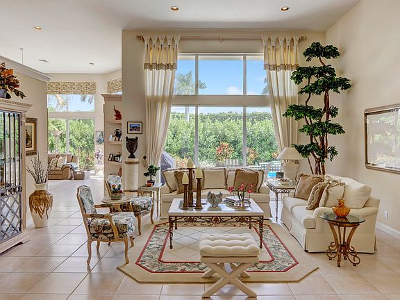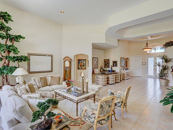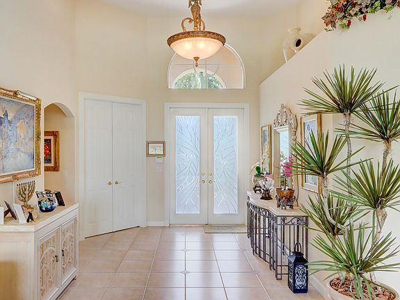 Double glass doors open into this lovely one-story home of 3 bedrooms plus an office & 2 1/2 baths featuring volume ceilings with extra high-hat lighting; neutral tile floors & carpeting; an open kitchen with 42'' whitewashed oak cabinetry, granite countertops, backsplash & matching table; central vacuum & water filtration systems; vertical blinds on the windows; a spacious Master Suite with 2 walk-in closets & a marble Master Bathroom with marble counters; new garage doors & coach lights. A/Cs - 2017 & 2012; generator 1 year old. The private open patio offers a pool with spill water feature. Furniture is negotiable.