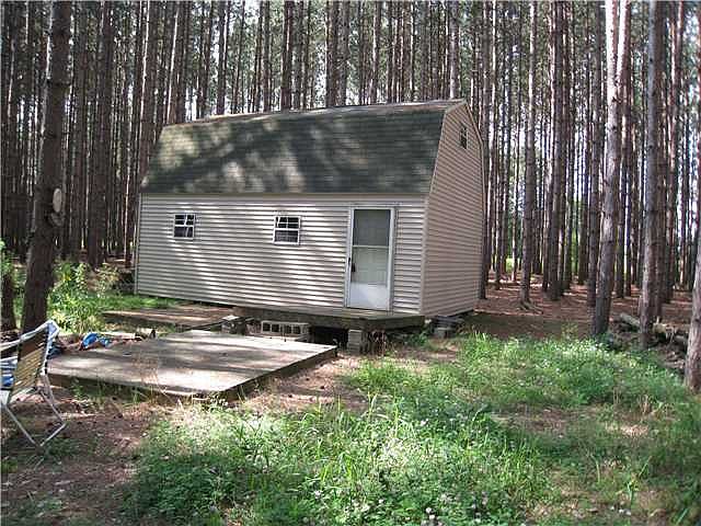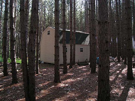 Cabin built in 2005 with mature pines in the front and mixed hardwoods towards the back of the property. Plenty of wildlife with state land not too far away. Great for hunting or recreation. Stairs to second story for additional sleeping area. Gas grill, propane heater and most furnishings included.