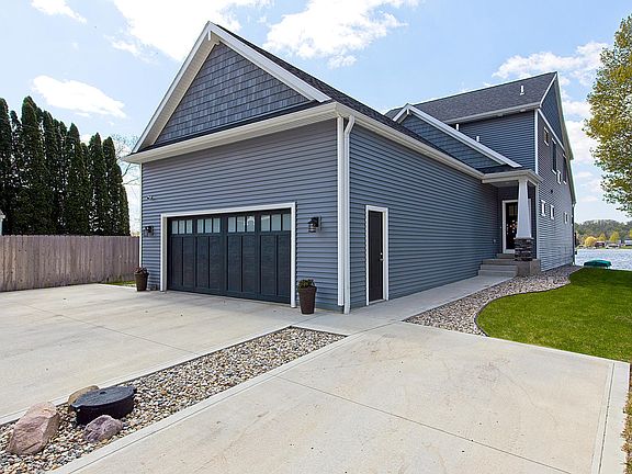 5 BD 3.5 BA 3,585-sq-ft 2-yr-old 2-sty home on Shavehead Lake designed for relaxed, social, elegant, and fun lake life. Large windows, columned patio, low-maintenance deck, indoor equipment storage. Concrete seawall, shallow, sandy entrance, private dock. Main level: kitchen w/ island, snack bar, appliance closet, quarts counters; dining room; living room w/ fireplace, deck access; master suite w/ soaking tub; powder room, dual vanities. Upstairs: 4 BD, sitting room, BA. Lower level walkout: Family/rec room, wet bar, BA. 9-ft ceilings, 4-ft halls on main and lower. Upper has own heating and cooling. On-demand hot water, remote control heating and cooling, Nest security cameras, 2-car garage w/ side garage door for carts, underground sprinkler, underground propane tank, wireless dog fence.