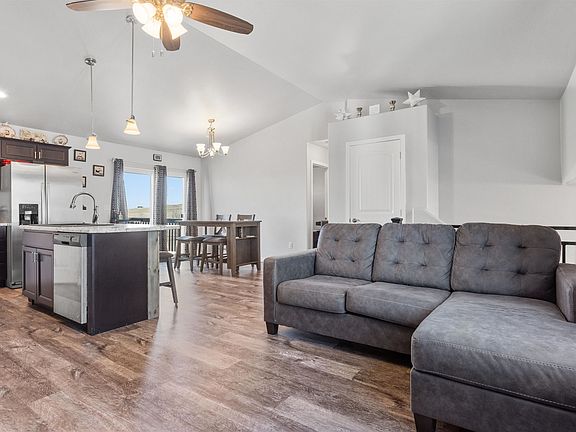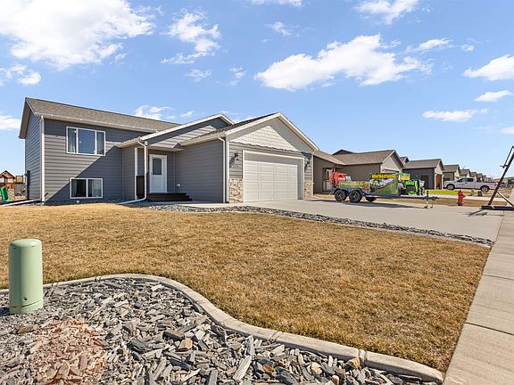 List price will be reduced by $100 per day until an offer is accepted. Welcome to this well-maintained modern haven built in 2021 and nestled in the scenic Rapid Valley area. The extended driveway provides ample parking, complemented by lush sod and an irrigation system ensuring year-round vibrancy. Landscaping includes rock and concrete curbing, adding elegance. Explore the peaceful back yard, which is ready for entertaining guests or starting your next home project. The stained deck and storm door enhance security and ambiance. Inside, the open-concept layout seamlessly blends functionality with modern aesthetics. The kitchen features sleek countertops, stainless steel appliances, a large corner pantry, and ample cabinet space. With upgraded amenities and meticulous attention to detail, this home epitomizes modern comfort and convenience. Contact your go-to Agent to schedule a tour.
