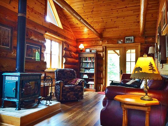 Looking for that peaceful setting - this is it!! Cozy log home on a nicely 4.5 wooded acre parcel with the Sturgeon River flowing through. Showcase cabin interior; hard wood floors, loft bedroom with ample storage, kitchen features granite countertops and old chambers stove. On those chilly nights sit by the wood stove in the living room, or on sunny days enjoy the view from your chair on the covered front porch. 36X28 garage with 28 x 14 loft built in 2000, circle drive and nicely landscaped. This home is very well maintained and has had many updates. Metal roofs on house & garage. Miles of Hiawatha Nat'l Forest nearby.