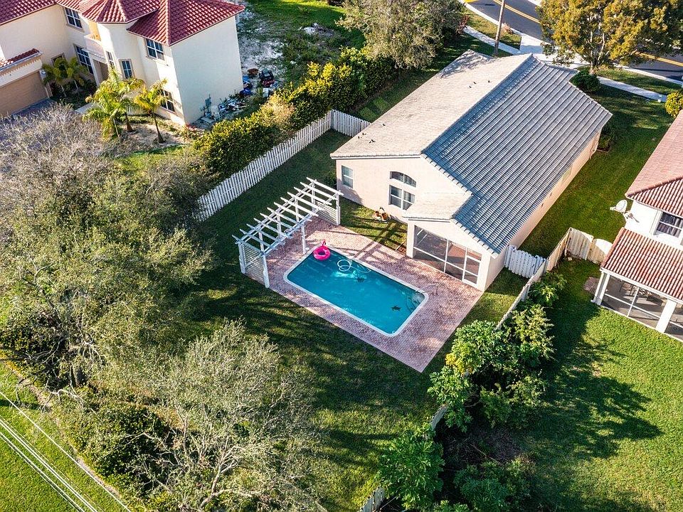 WELCOME HOME This lovely 3/2/2 pool home is nestled in the very sought after Dillman Farms community. Upon arrival you will be greeted by a virtual guard gate, well established neighborhood with lush landscaping and quaint neighborhood consisting of only 139 single-family homes. ENTERING this beauty you will discover, a grand 8' entry door, gorgeous millwork, soaring 13' vaulted ceilings, plantation shutters throughout, spacious living areas offering an abundance of natural light and pool view from virtually all common areas and elegant master suite that features a walk in closet, roman tub, walk-in shower, dual sinks and private water closet. Passing through you will find that this gem is well maintained, features a lovely color palette, fantastic floorplan with formal common (CLICK) areas yet has an open feel, very functional kitchen with a four person bar, pantry, newer stainless steel refrigerator and dishwasher, laminate flooring, large baseboards, 7' x 5' under AC laundry room with sink, storage, pull down stairs and much more! STEPPING OUTSIDE into the 17' x 8' covered and screened lanai brings you to a sparkling pool with mosaic art, spacious 40' x 20' brick paver pool deck, grand 24' x 10' pergola, fully fenced private yard with mature oak trees and green space galore. It defines the perfect space for relaxing, family gatherings, entertaining and outdoor fun! DILLMAN FARMS COMMUNITY is known for being a peaceful and quiet family-friendly neighborhood, their low HOA fee that includes; security gate and patrol, picnic area, cabana and pool, common area taxes and maintenance and management fees. And the variety of homes in many different sizes and styles ? making this neighborhood a popular choice for many families. HELLO PEACE OF MIND barrel tile roof, hurricane shutters for all openings, recently painted exterior and 2021 water heater, pool pump motor and vacuum. LOCATION... LOCATION... LOCATION 1700 acres of wow is within walking distance... Okeeheelee Park is one of the largest parks in south Florida and features: a championship 27-hole golf course, mile-long fitness trail, Pooch Pines Dog Park, mountain bike and hiking trail, paved multipurpose trail, nature center, 9 ball fields, 4 soccer fields, expansive water skiing lakes, BMX track, disc golf course, 8 tennis courts, Jim Brandon Equestrian Center with a 9 mile equestrian trail and tons of space for pretty much any activity you'd want. And Greg Norman Jr. is in the process of building Shark Wake Park, an "aqua park" and "wake park". And located just minutes to everything one could possibly desire; Florida's Turnpike, I-95, Palm Beach international Airport, world-class shopping, dining, arts, entertainment, beaches, theater, golf, business and economic development, education, green living and so much more! BE SURE TO WATCH THE WALK-THROUGH VIDEO LINK AND CHECK OUT THE BELOW WHOLESALE HOME IMPROVEMENT VIP DISCOUNTS LOCATED ON SITE! RUN LIKE YOUR PANTS ARE ON FIRE!!!
