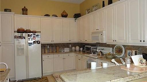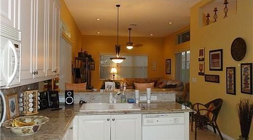 Move right into this immaculate, spacious & affordable home. Tumble marble backsplash, beautiful light granite, large neutral tile set on a diagonal throughout except in the master & guest bedrooms. Marble inlays in master bath flooring. A/C filter is changed in the garage, not in the dining room ceiling, gutters, upgraded landscaping, large yard with privacy hedge and a beautiful easterly breeze. Come join the active Villaggio lifestyle with 2 clubhouses: indoor/outdoor heated pools, clubs, shows tennis & cafe. Villaggio is an 80/20 community; therefore, 20% of the residents can be under 55 years of age, per the association. All sizes are approximate and not guarangeed. House is sold "as is" with the right to inspect. Brokered And Advertised By: Branham Realty, Inc. Listing Agent: Joan Marie Pizzi