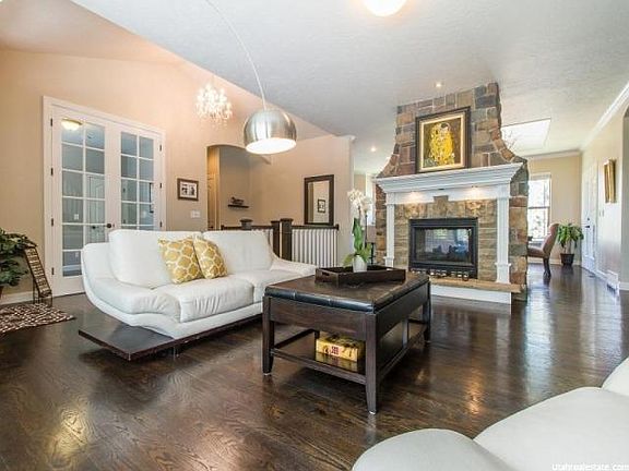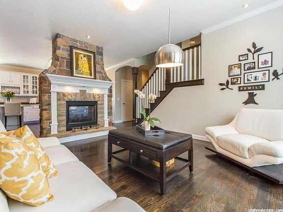 Beautifully updated Rambler in the Michell Hollow Park area, South Canterbury, Highland. Next to two other parks & the famous Murdock Trail. Walking distance to Freedom Elementary. Great commuting via the new commuter lane, SR 92. Recently remodeled, open-concept home with striking hardwood flooring and crown molding. Center of attraction is the Greatroom's double-sided rock fireplace. There's a cozy covered deck off the Dinning area with views of Lone Peak cove. Home Theatre w/Sound Proofing. In-ground trampoline, deck, basketball court, and outdoor fire pit and seating. A Bright Daylight basement with Kitchenette & Walkout.