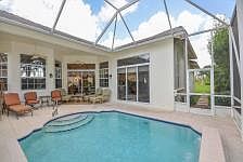 Terrific opportunity to own this custom built Celestia model with expansions including back patio as well as an extended garage. Located in the desirable Bellagio, this home is beautifully landscaped, with indirect lake view, secluded backyard, and large screened in pool with patio area for entertaining. Two newer AC units in 2014 (per PBC permits), 240V receptacle for e-car charger, recirculating hot water device, second set of washer & dryer set up in garage (good for washing work clothes or dog towels), leaf filter gutter protection, fully fenced in yard and many more added improvements in this home. It features an open and spacious floor plan, volume ceilings, with entryway and knee wall entry to the formal Dining Room with built ins, spacious living spaces, (MORE)