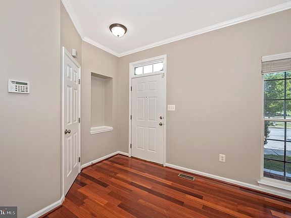 End unit, brick front townhome, Located in Wellington Trace and is convenient to shopping, dining, historic and cultural Downtown Frederick, and all major interstates. 3 bed, 3 full bath, and 1 half bath townhome has an open floor plan with lots of natural light throughout. The main level boasts Brazilian hardwood flooring, fresh paint throughout, and large beautiful windows. Gourmet Kitchen w/gas range, kitchen Island, recessed lighting, granite countertops, and stainless-steel appliances with extra space for large table. The home has a full bump-out extension on all 3 levels! Upper level has wall to wall carpet, walk-in closet, and custom closets in 2 bedrooms. Downstairs is spacious, fully finished basement with full bathroom. This space offers a large Recreation/Family room and additional Hobby Room/Work Out Room/Office Space with closet. Walk-out basement which brings in tons of additional natural light and access to the Fully Fenced backyard and brick paved patio. The Neighborhood has playground close by, walking trails, community pool and so much more! Two assigned parking spots and plenty of guest spaces as well. Low HOA and NO CITY TAXES.