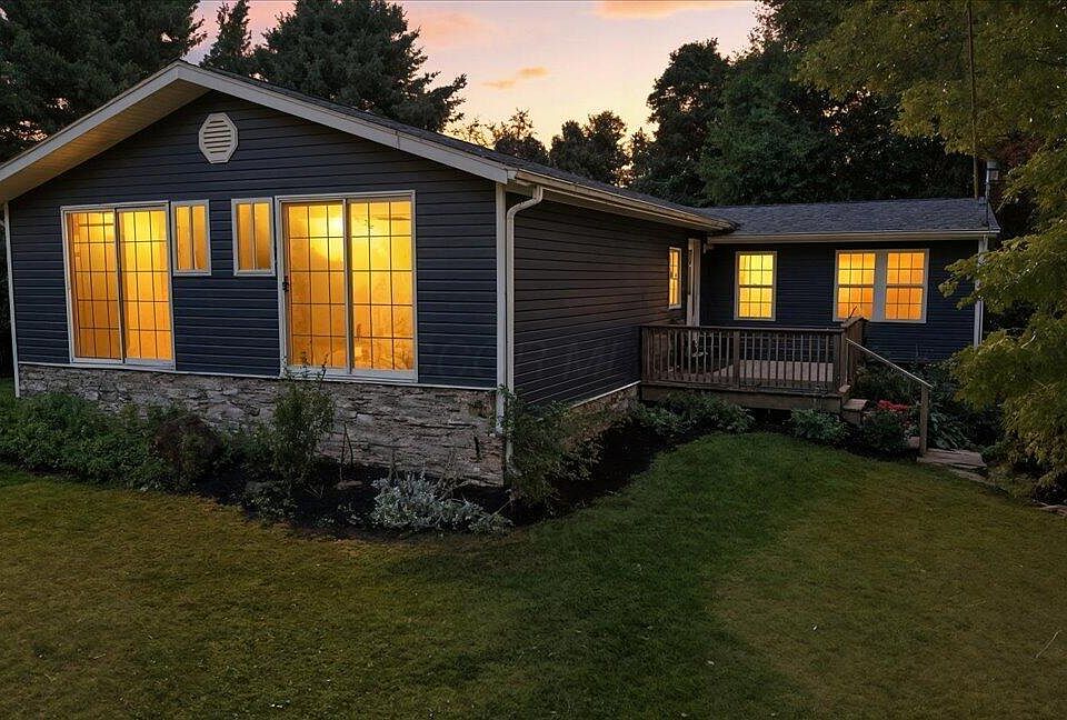 Stunning 5-bed, 3-bath ranch on 3 serene acres, featuring a private pond and stream. This move-in-ready home boasts a spacious, fully updated interior and exterior, with single-floor living and a finished walk-out lower level. Enjoy country life with modern comforts, including a detached garage and storage shed. Perfectly nestled in a peaceful rural setting, this home offers an open floor plan and countless upgrades. Ready for you to call it home!