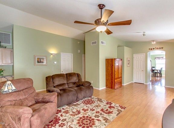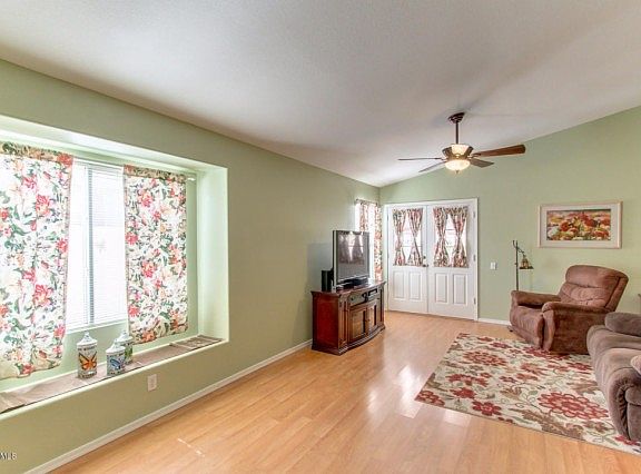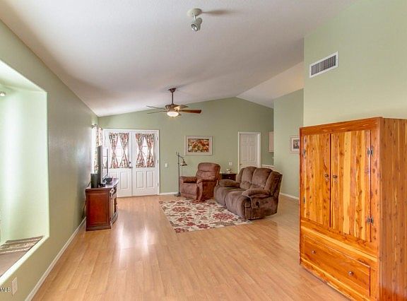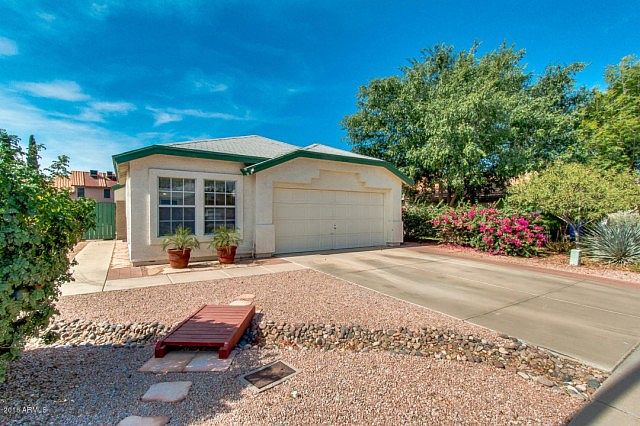 This stunning 3 bedroom, 2 bath home features a remolded interior, low maintenance desert front landscaping, vaulted ceilings, wood flooring, designer paint, and elegant light fixtures throughout. The fabulous kitchen offers stainless steel appliances, update cabinets and granite counter tops. The beautiful master features a full bath with his and her sinks, bath roll in shower, spacious walk-in closet, and french doors.The second bedroom could be considered the size of a second master. The home is on an extra large lot with room for a pool and also handicap accessible with wider doorways. The gorgeous backyard is comprised of a covered patio, flowering desert landscaping, wall art, and a convenient storage shed.