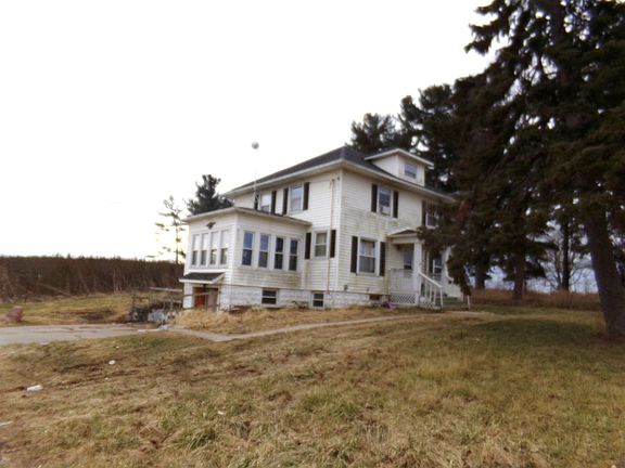 This property has 50.37 acres+/-. 41.96 acres+/- is cropland. 8.41 acres is homesite and non-tillable ground. Property has a 2 story home that features 4 bedrooms, 2 baths, built-in china cabinet in diningroom, hardwood floors, updated kitchen, sunroom, double pane windows, livingroom with electric fireplace, on a basement foundation. Home has a new furnace and AC. Property also has a 108x55 polebarn and a silo. Possession of land will be subject to crops, 30 DOC on house.