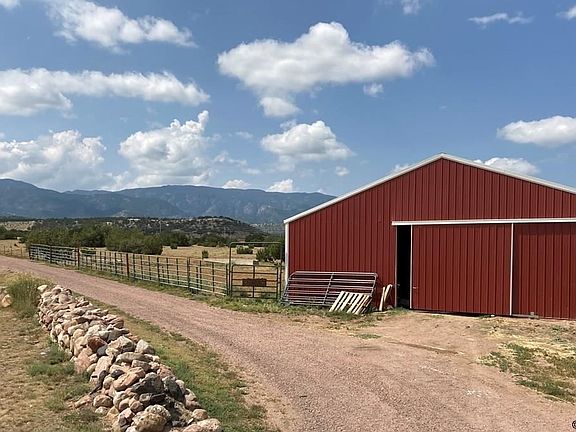 Beautiful 35 acre horse property in desirable gated Locke Mountain Community. Wonderful panoramic mountain views including Pikes Peak and the surrounding towns. Large 40 x 50 barn with 2 (could be 4) stalls, hay storage, and water. One mile horse trail that wonders through the property. Close to BLM where you can ride forever. 7 acres are fenced and cross fenced, with corrals (all fence panels will stay). Open concept living room with fireplace. Brand new roof with skylights, making it bright and cheery. Master Bedroom has a 5 piece bath and 6 x 10 walk in closet, also an extra 5 x 6 room for an office or second closet. This property, close to the Locke Mountain Ranch entrance, is only 10 minutes from town! Close to San Isabel National Forest and 45 minutes to Colorado Springs and Pueblo. 20 minutes to Canon City. In addition - a 16 x 7.5 Battery and storage shed, a fenced area for gardening, and chicken coops. This property currently has an active worm farm, and several fruit trees. Domestic Well. OFF GRID -by sellers choice- but electric is close by. Heating - wall heaters, fireplace, forced air - propane, Mud Room has freestanding wood stove which burns wood and coal. Work tables in mud room are included.