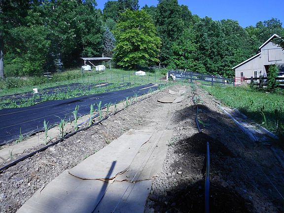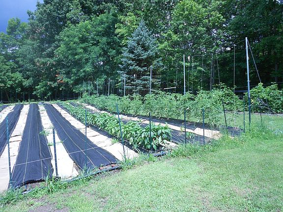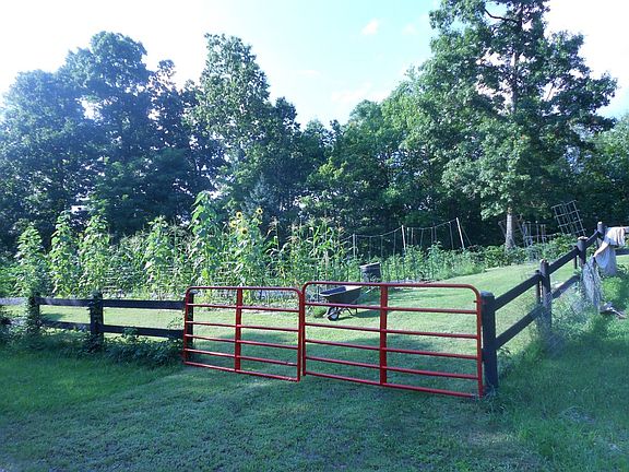 On this completely private and secluded 4.79 ac. m/l property, the owner has created a wonderful micro farm with over 6000 sq. ft. of raised beds that includes an irrigation system, over 2 ac. m/l of broad board fencing for animals, large compost area for managed waste, a large 27 x 50 barn with concrete floors, private office, stalls for animals, plus a custom designed 1 bedroom living quarters that offers open living, dining and kitchen, large bedroom with laundry facilities and full bathroom in hall. Property offers a nice mixture of pasture and trees.