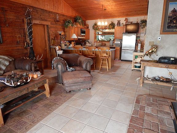 Beautiful Log Home With Amazing Views. 4 bedroom (2 bedrooms have loft areas too) 1 3/4 baths on almost 8 acres. Great Outside Entertaining Area, propane fire pit, water features and hot tub are just a few of the outdoor features. 2 Car detached shop with 1 bedroom apartment, kitchen and full bath. Lot's of outbuildings and horse corrals outside. Irrigation Pond