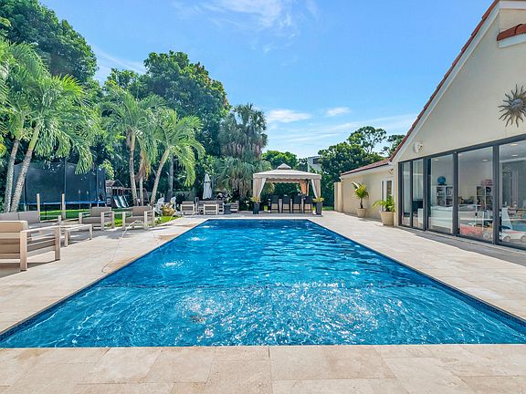 Completely unique Estancia North estate unlike any other home in the community. 5 bedrooms, 3.1 baths, 2 car garage. 1 bedroom converted to a media room. Amazing architectural detailing. Beautifully updated home on an immense lot with a salt chlorinated pool. Lush landscaping in a park-like setting with mango & banana trees. The open floorplan is filled with light and luxury that seamlessly connects all the living areas. 2 kitchens will accommodate any of your special needs. Spiral staircase leads to the private 2nd floor office. Many upgrades. including impact glass windows & doors, high end appliances, and summer kitchen. Underground propane gas tank. Ideal central Boca location--convenient to houses of worship, shopping, dining, A-rated schools & transportation. Special upgrades: west attic blown insulations, high efficiency water tank, central air infrared cleaners, LG refrigerator, Bosch dish washer, 6 burner gas cooktop, leaf guard gutters, playhouse, exterior sound system, security system with cameras and night vision, landscape lighting, redesigned pool with sundeck, saltwater converter, 7 multi-color lighting, Ring Smart door bell to name a few!.