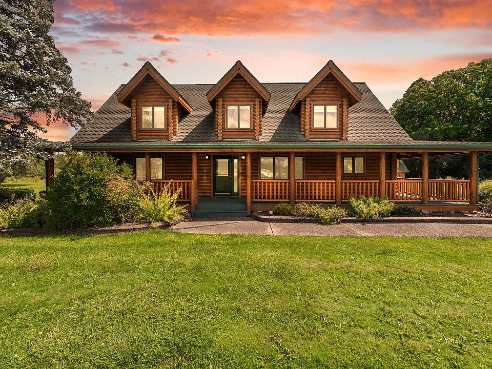 Stunning log home sitting on 9.9 acres. Back of property is wooded for hunting. Detached 2.5 car garage with loft. 30 x 60 pole barn with cement and electricity. Finished basement with new carpet, wet bar, kitchen and fireplace. Stove and refrigerator stay. New sump pump with battery backup, water softener. Great room with cathedral ceiling, wet bar, wood stove w/two story stone background. First floor master suite with separate jetted tub and shower. Den/library or formal dinning room off the kitchen. All kitchen appliances stay. Stove, cooktop, microwave, refrigerator, dishwasher and trash compactor. Central vacuum system. First floor laundry washer and dryer stay. Newer hot water tank (2022). New C/A (2021). Exterior logs were corn blasted, two coats of stain and two coats of clear in 2021. Home has been well maintained by the current owner of 20 years.